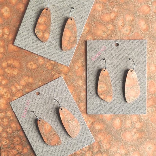 Handmade in Australia from 80% recycled paper and non-toxic materials, they are available with either surgical steel hooks or clip-ons in one of three sizes (10mm, 12mm and 14mm).