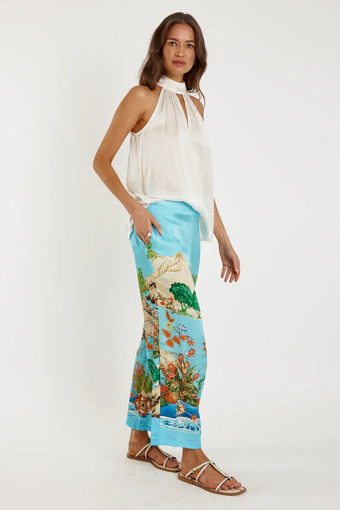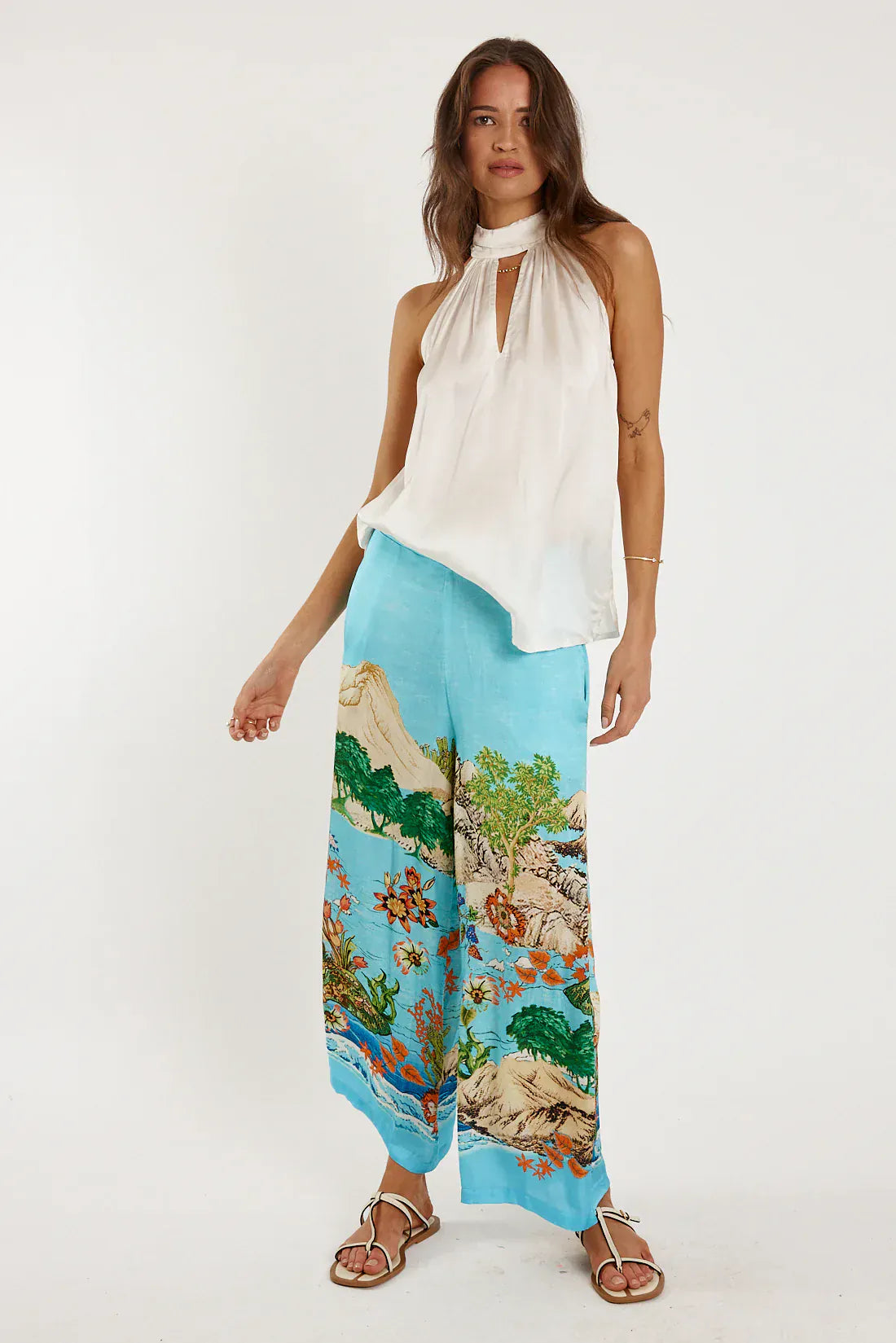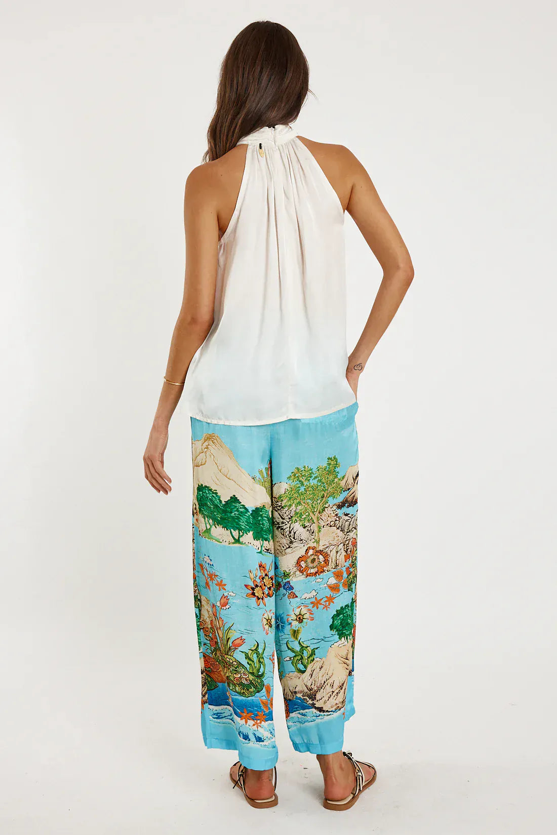 Embrace understated elegance with this sophisticated viscose halter top. The fluid fabric drapes beautifully, offering a graceful silhouette that transitions effortlessly from day to evening. Its generous length provides refined coverage while the halter neckline creates a striking focal point. Perfect for layering or wearing solo, this versatile piece becomes an essential addition to any refined wardrobe.