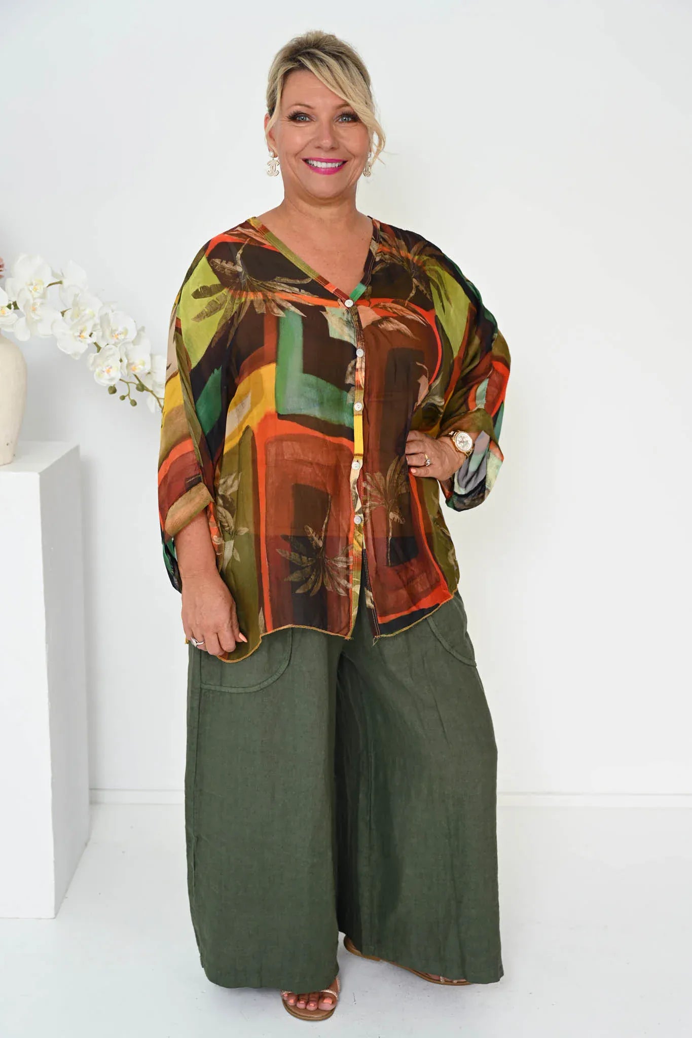The high, gathered waist features superior stretch for a perfect fit, while the flowing wide-cut leg creates elegant movement that flatters curves beautifully. Feature pockets on the hips add both style and function, making these culottes as practical as they are sophisticated.