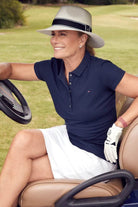 A classic, yet striking golf fedora made from our exclusive water resistant, wind resistant and travel friendly Flexibraid®. Ivory with a bold black and white ribbon trim and complete with a signature DH stud. A magnetised DH ball marker on the side, is a clever and practical feature. UPF50+ sun protection, lightweight and breathable.