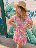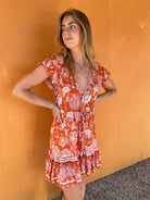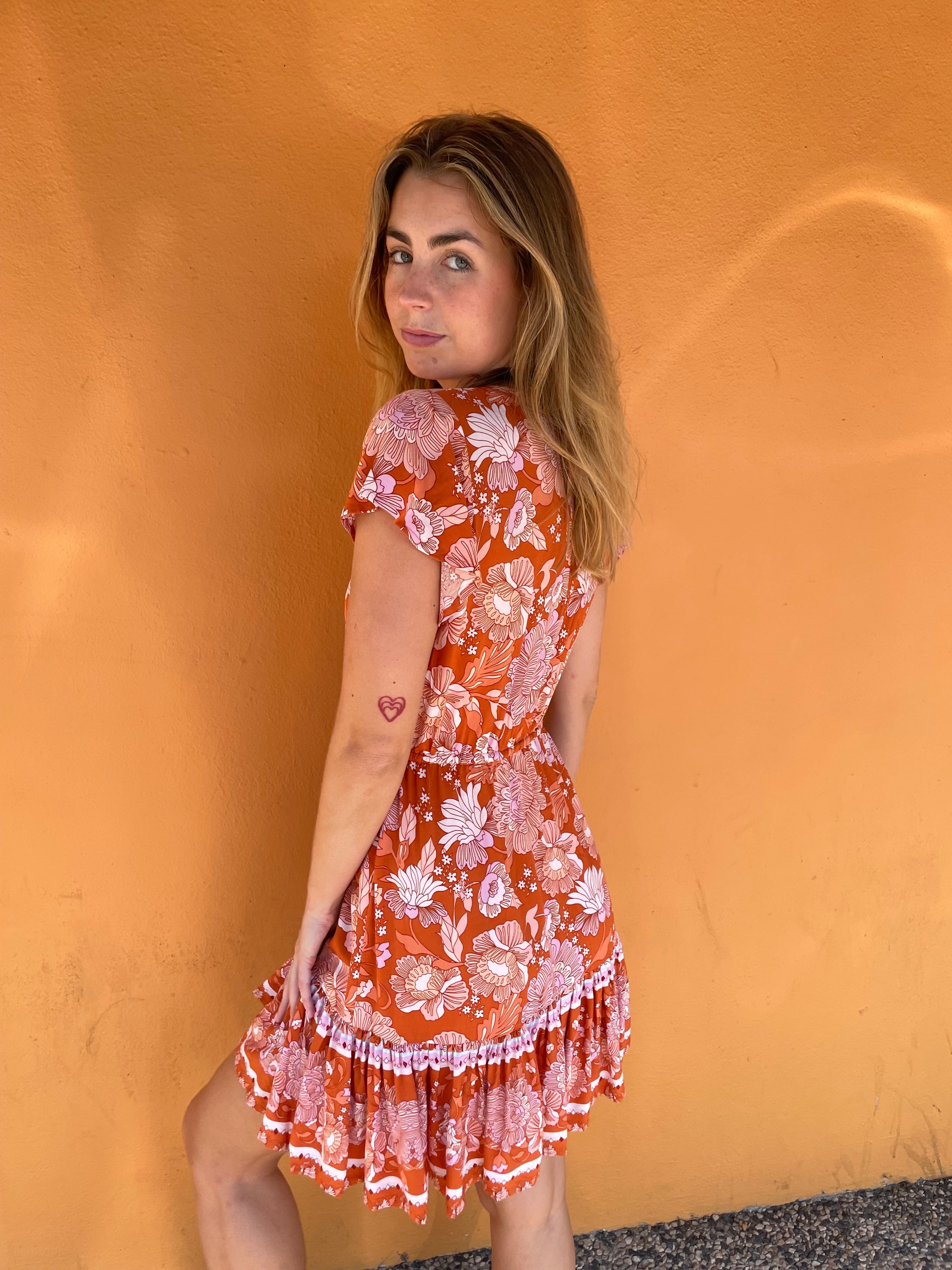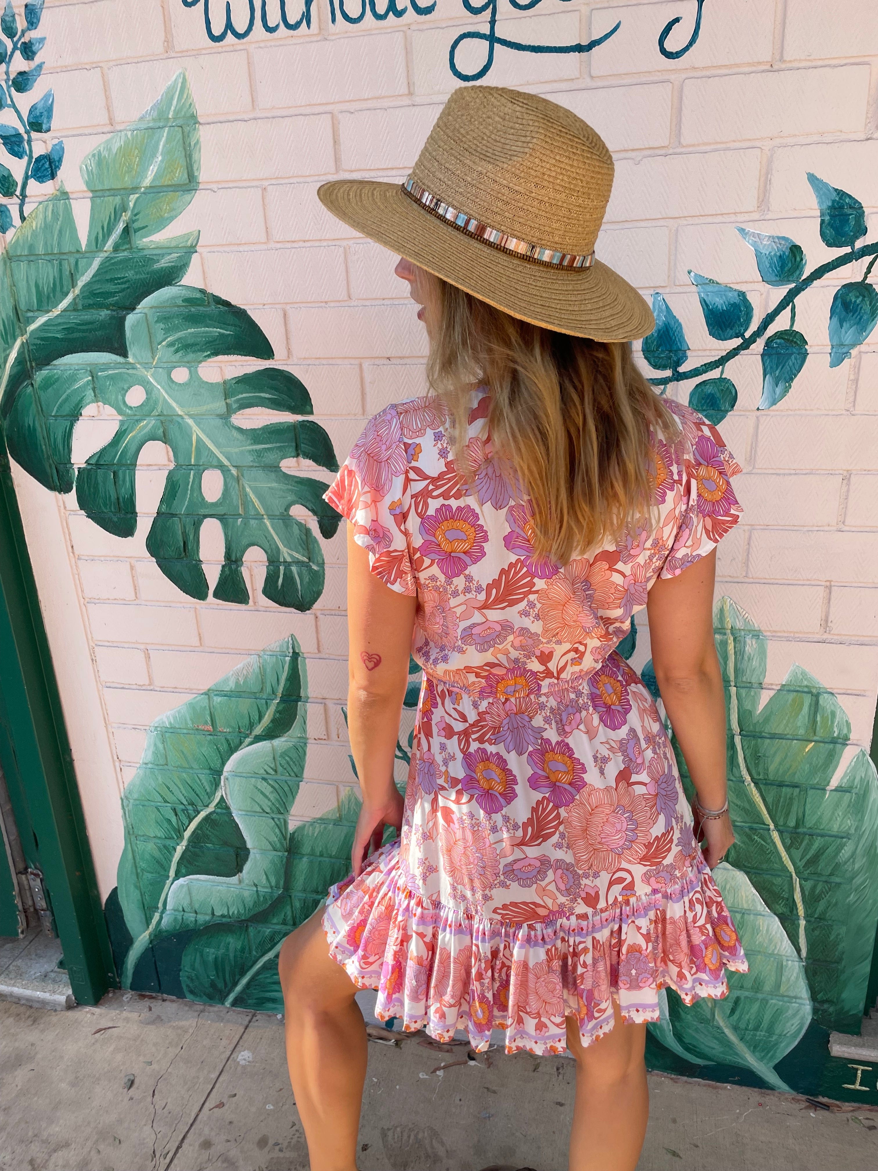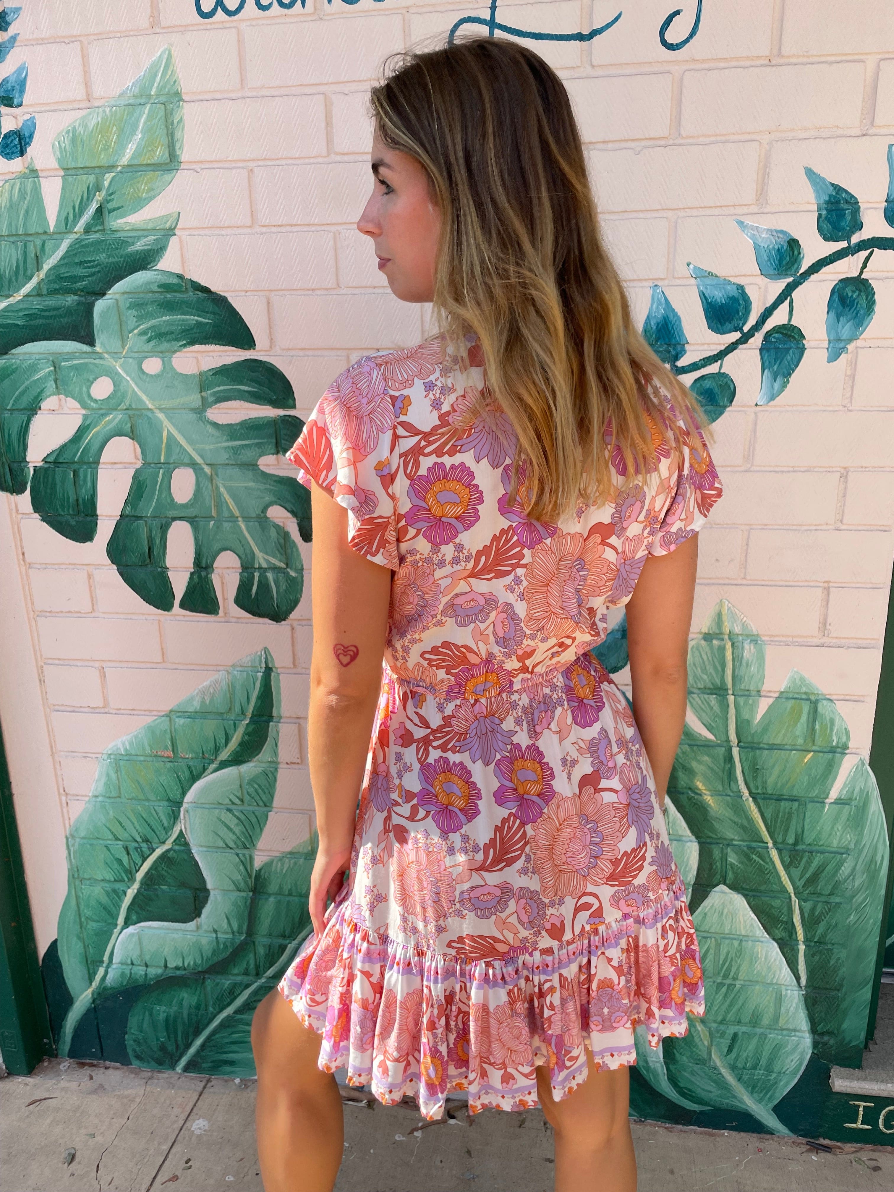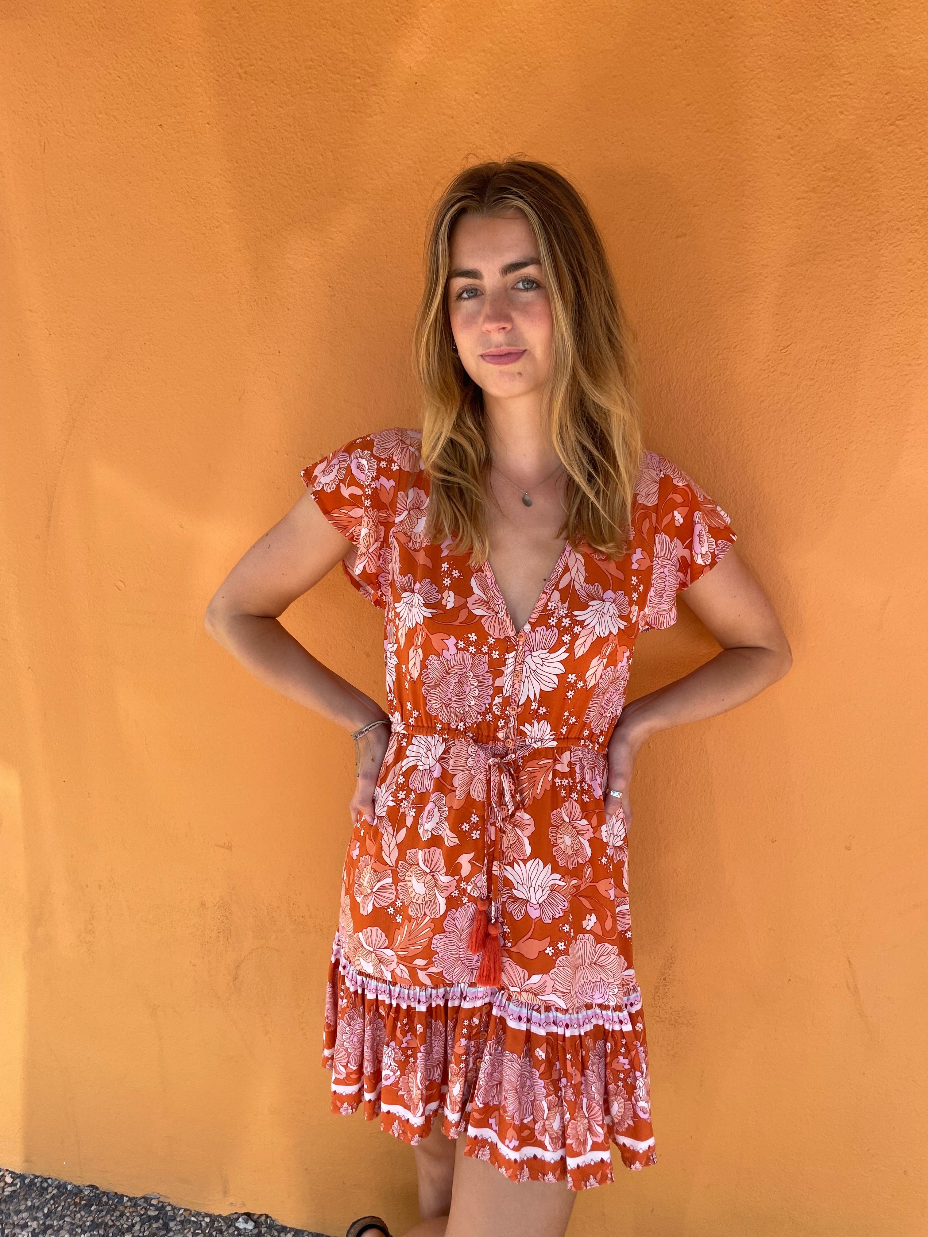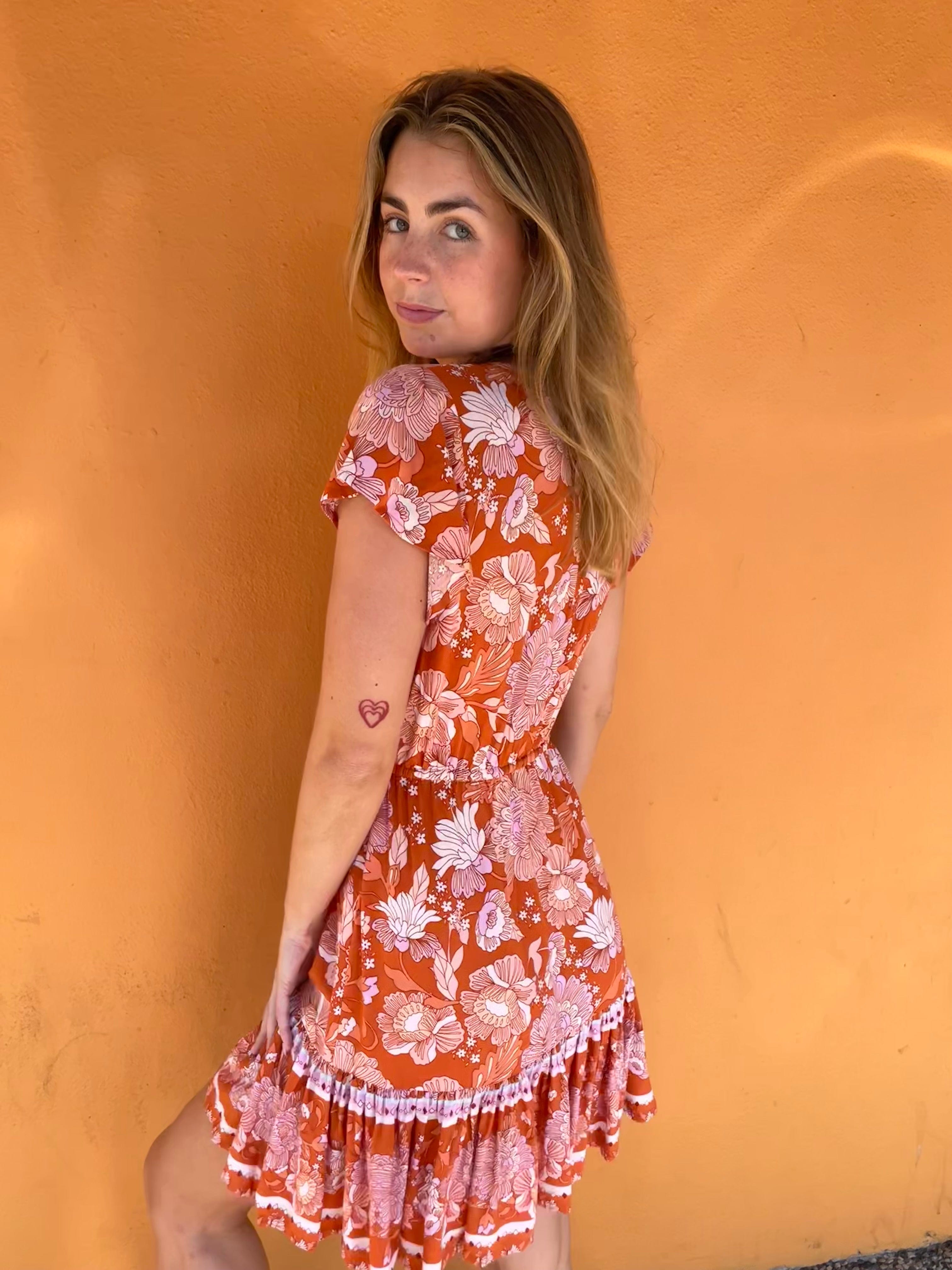 Our ever so popular Gypset dress has a drawstring waist and beautiful floaty hem with soft flutter sleeves.