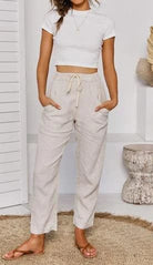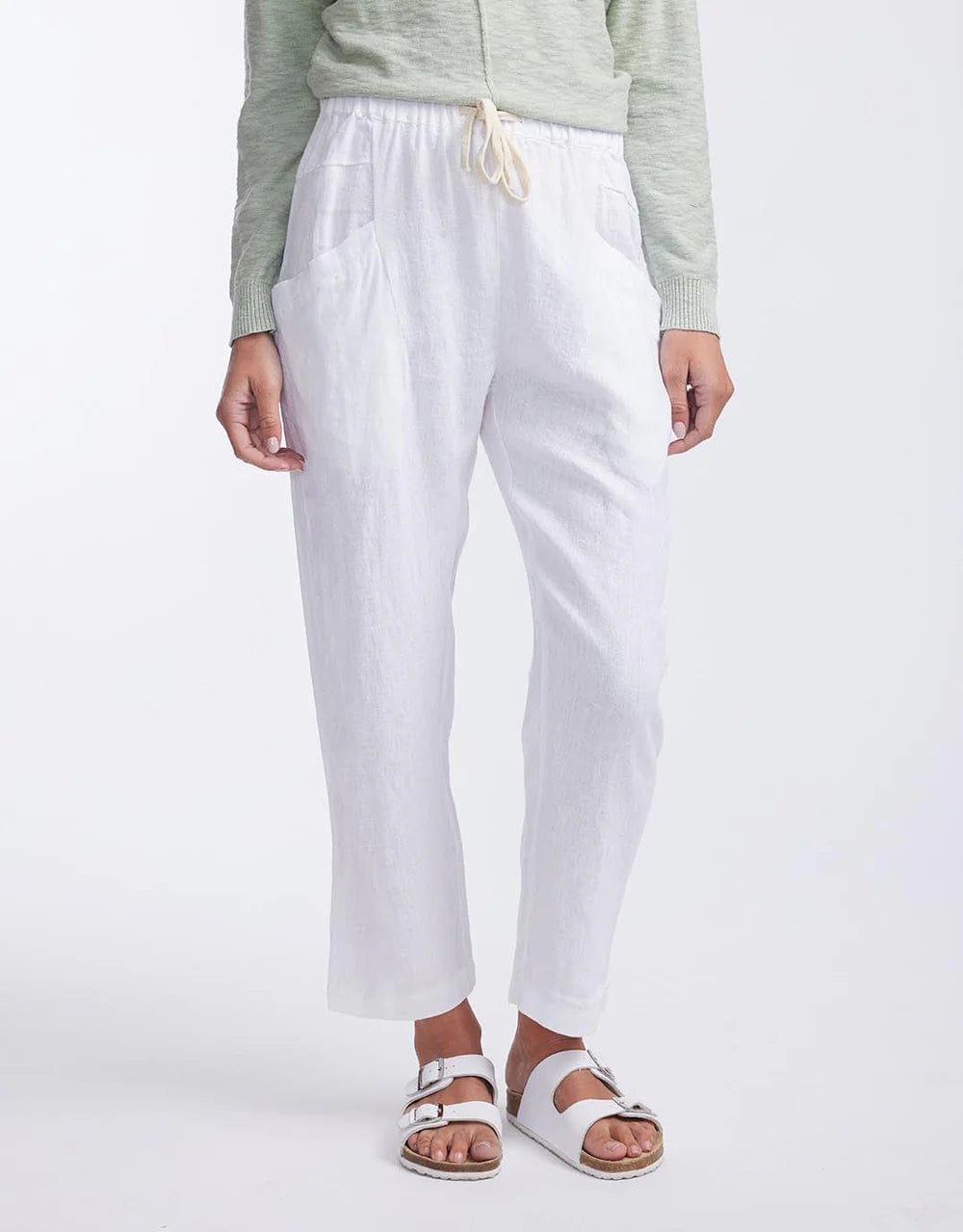 From holiday to everyday these Luxe Linen Pants from Little Lies are a summer necessity. With a comfortable elastic waist band with tie, ankle length, front pockets and soft 100% linen, these pants pair perfectly with any top or lightweight knit for an effortlessly put together look.