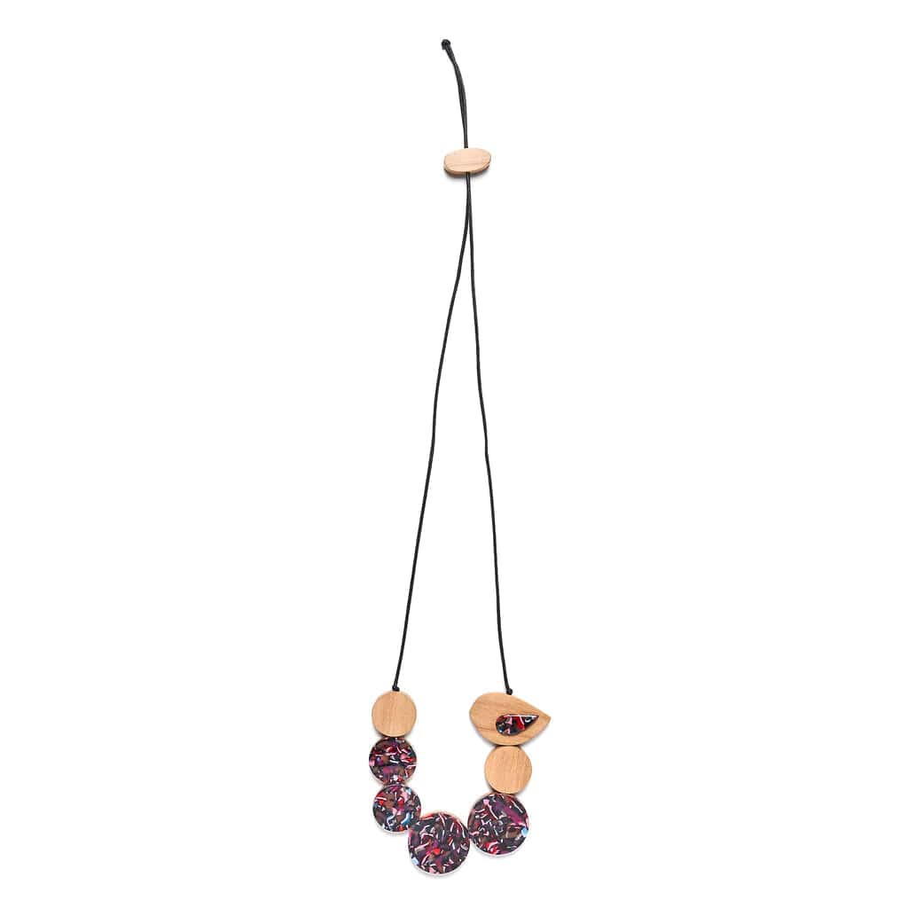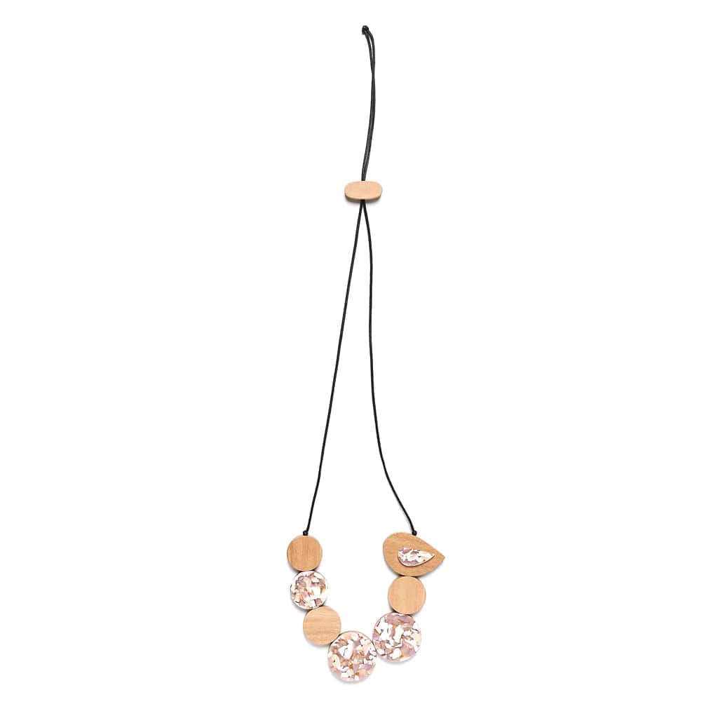 Our beautiful classic timber and resin Winging It Necklace is a combination of elegance and freshness that will effortlessly lift your outfit from casual weekend wear to office wear.  Adjustable, handmade with wood, resin on waxed cotton cord.  Look for the matching bracelet and earrings to complete the look.