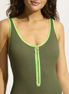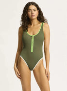 Seafolly Beach Bound Retro Tank One Piece - Khaki
