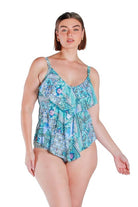 Are you looking for a comfortable and supportive tankini top that offers stylish coverage? The Whitehaven 3 tier tankini is our best swim top offering bust support for all cup sizes, with adjustable straps for the perfect fit. You'll love the way the frills flutter over the body providing coverage for the bust, belly, and hips. The Whitehaven print features the universally flattering shades of aquatic blues and greens, with delicate pops of lilac and pink. Pair your tankini with a matching pant from the Whitehaven collection.